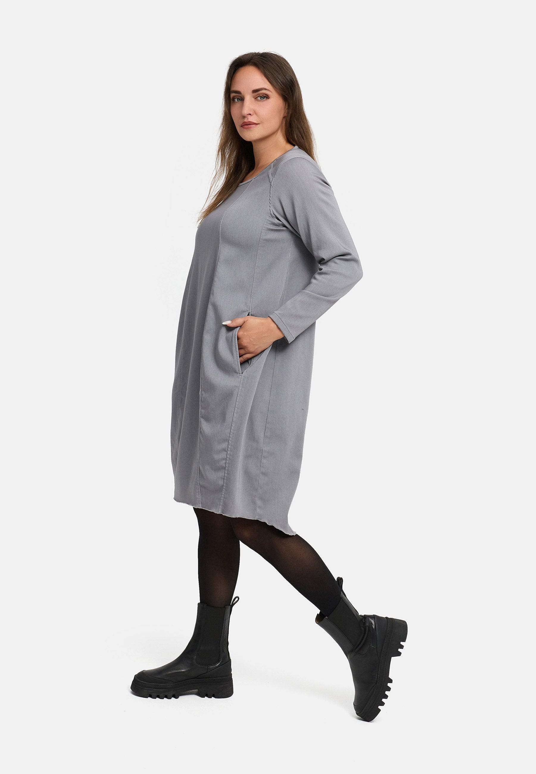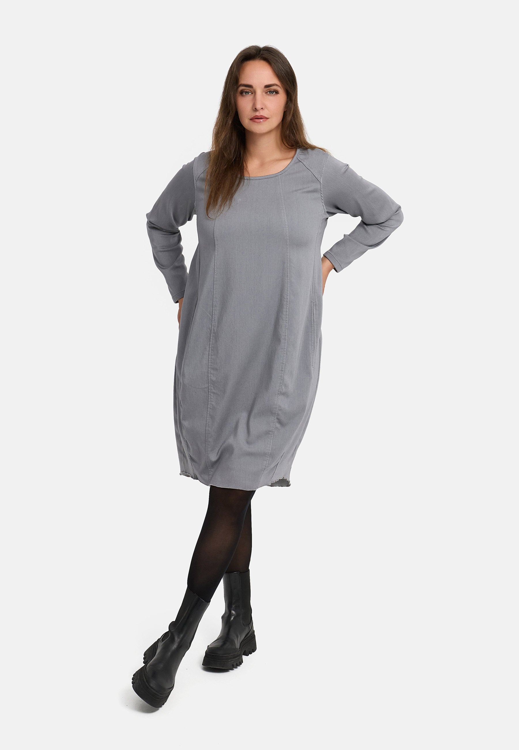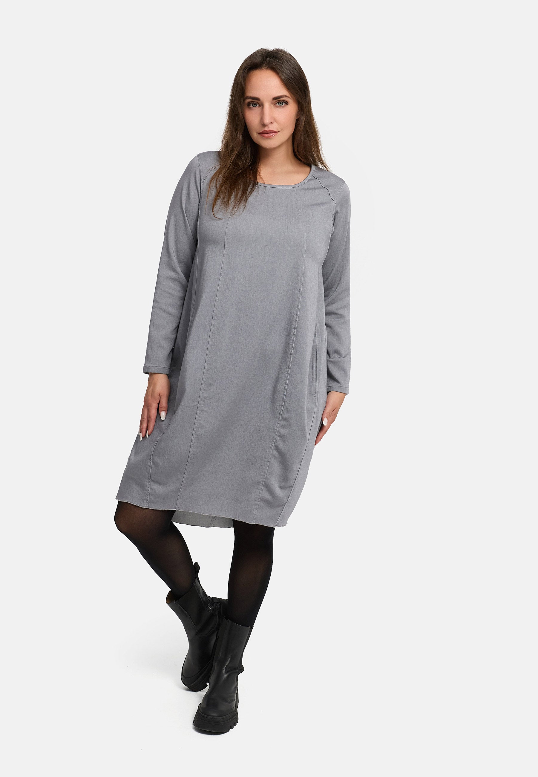 Ein Kleid, das Komfort und Lässigkeit vereint – mit klarer Silhouette, feinem Denim-Touch und moderner Struktur.